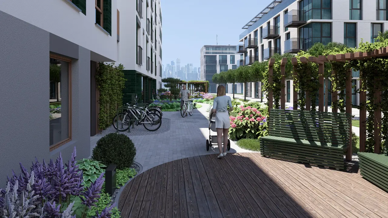 Strefa dziedzińca to przestrzeń dedykowana wyłącznie mieszkańcom budynku. Jej funkcja skupia się na wypoczynku, integracji sąsiedzkiej oraz kontaktach z naturą. W skład tej strefy wchodzą m.in.: