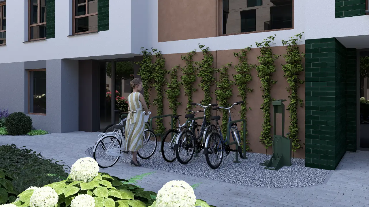 - funkcjonalne miejsce ze stojakami rowerowymi oraz stacją naprawczą